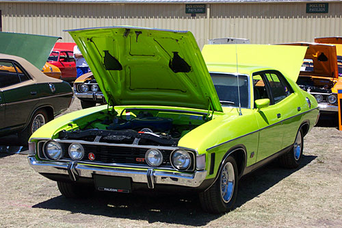 We will restrict our examination of corporate colours to the GT model, for the simple reasons that the GT Falcons are the only models for which extensive figures and research has been released by Ford Australia, and the GT is now a highly collectable car with much interest shown in the cars providing a wide and historic photo database. As ever, we are highly indebted to the Falcon GT Club of Australia, their members, site webmaster and historian.