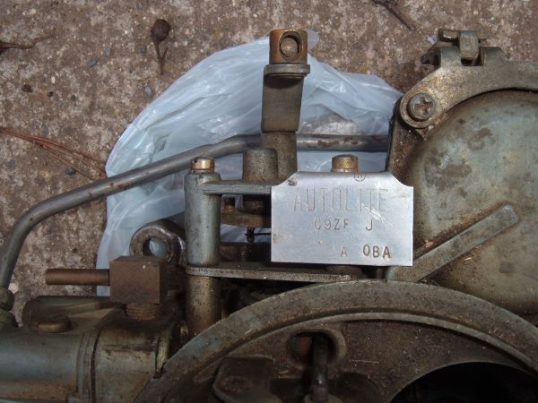 Note the Autolite tag on both carbs at the front attached by one of the carb top screws, and the vertical heat shield for the choke heat mechanism; parts that can easily get lost over the years.